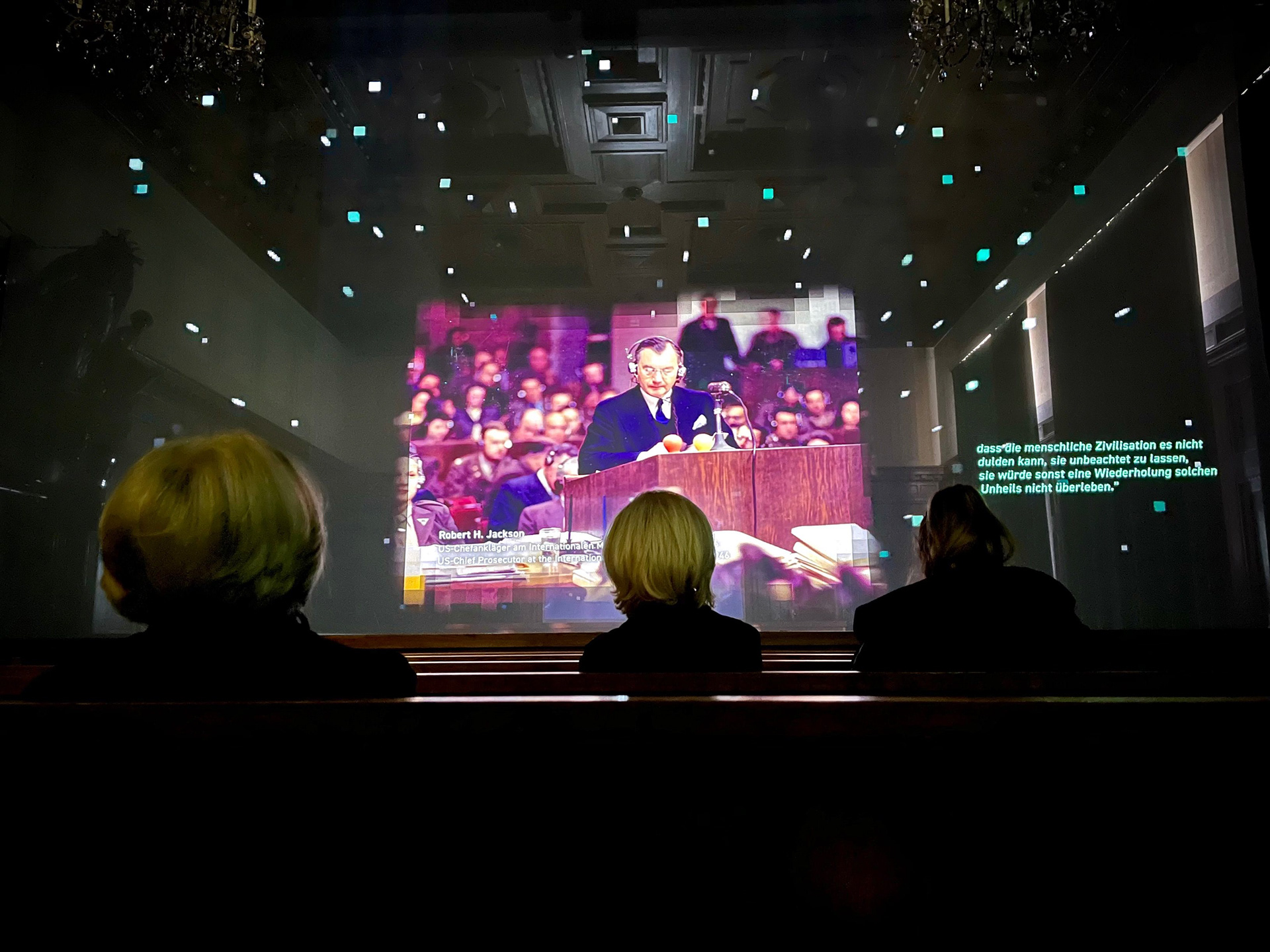 TAMSCHICK Media+Space transformed the historical courtroom into a virtual space immersing visitors in the sounds and images of the historical events. The audiovisual staging embraces the courtroom with the help of two semi-transparent projection surfaces layered one behind the other. By this the courtroom appears as a virtual time capsule, staging the precedent case of the Nuremberg Trials.