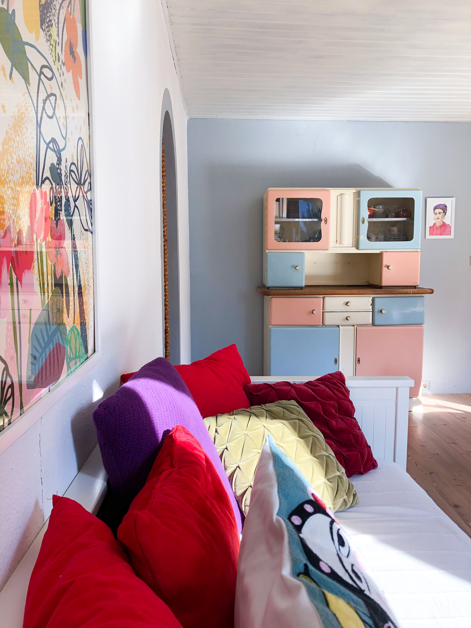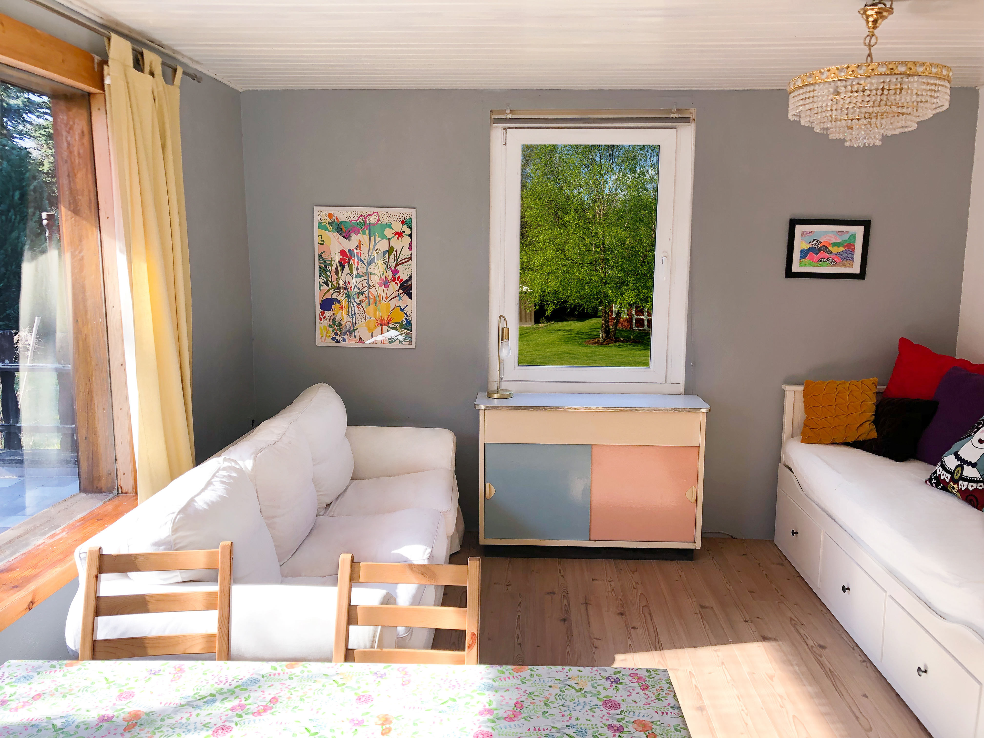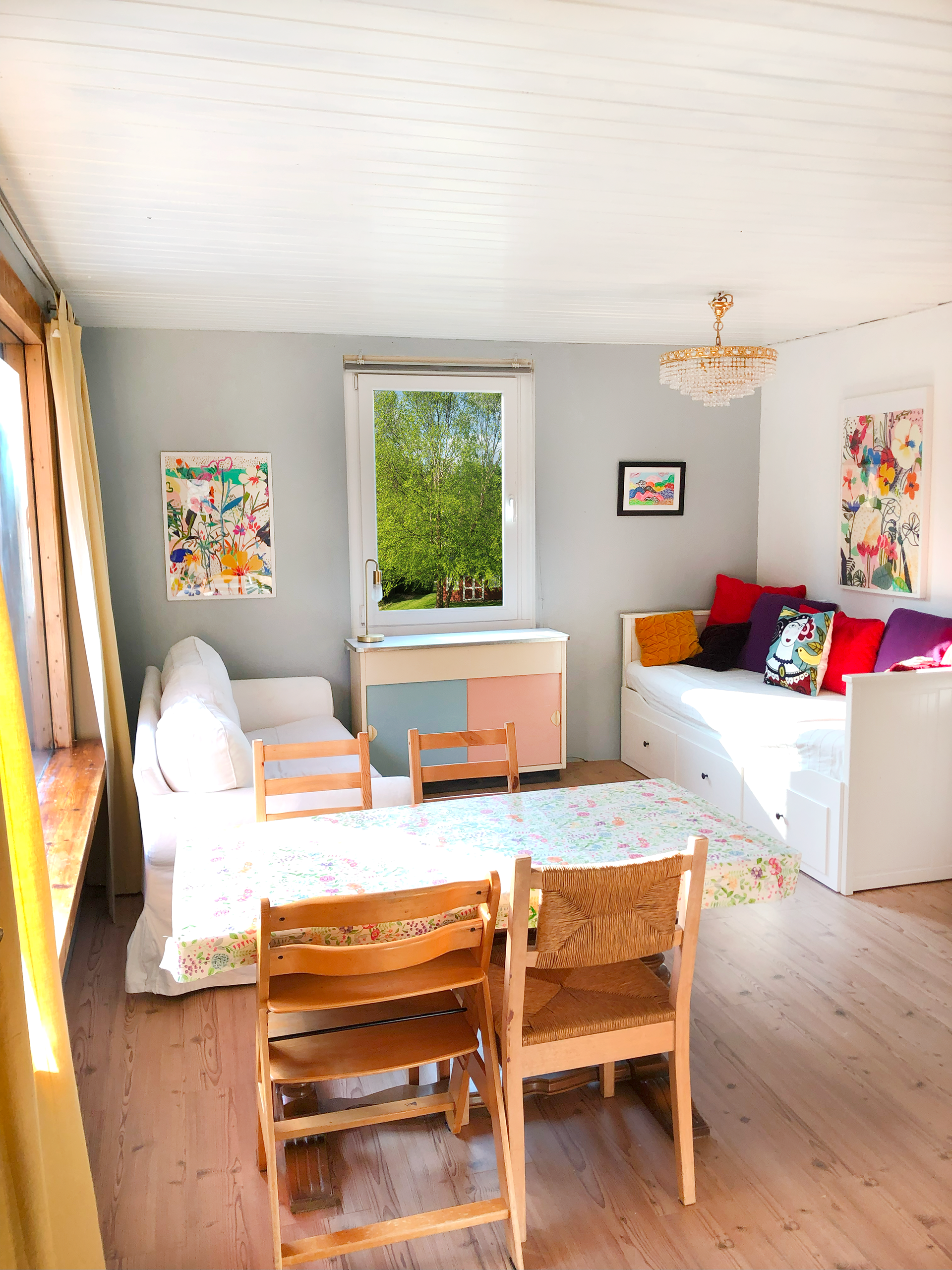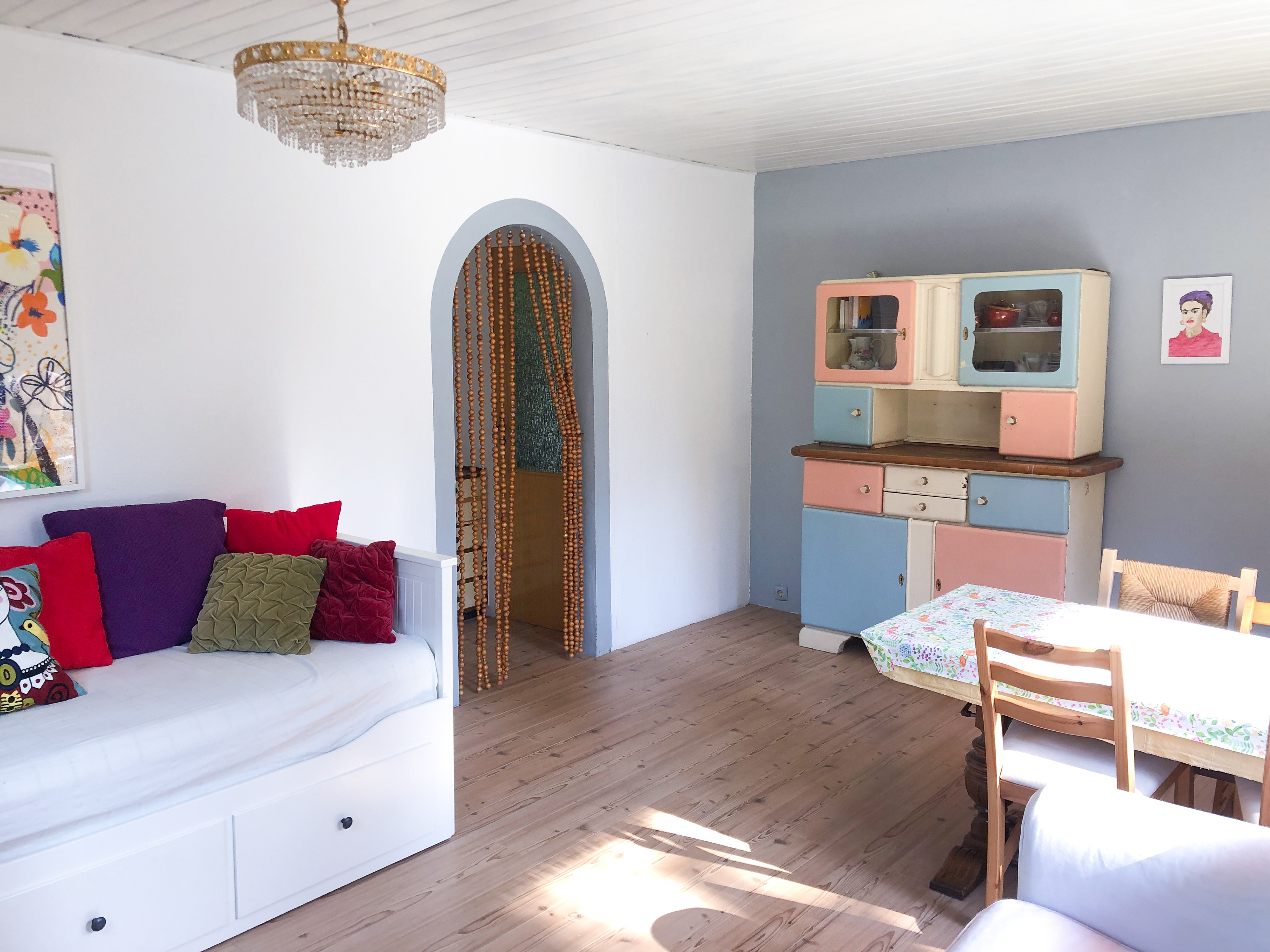 Inspired by a fresh, youthful pastel aesthetic, we transformed this East German-style garden house into a cozy retreat in the Berlin woods—perfect for relaxation, meditation, creativity, and gardening. A serene haven to recharge and reconnect with nature.